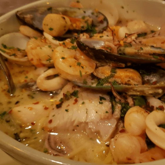 Clams, Mussels, Calamari, Scallops, Shrimp and Fish