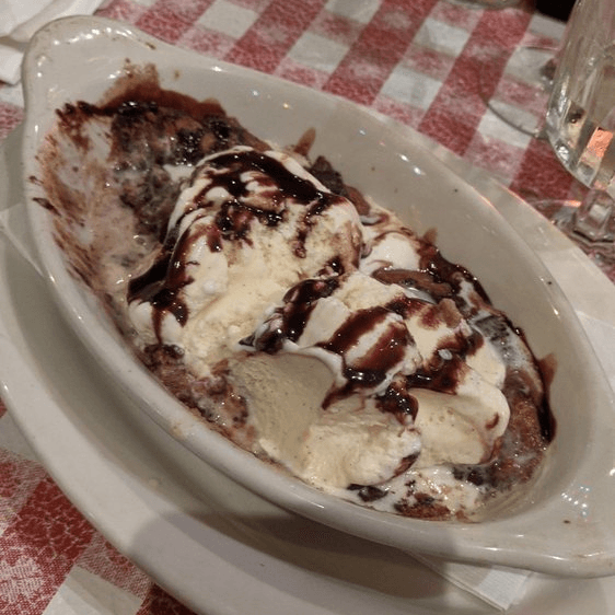 Fresh baked Chocolate Chip or White Chocolate Chip Macadamia Nut Cookie, Topped with Vanilla Bean Ice Cream