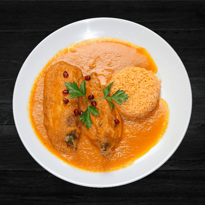 Red or green sauce, chicken, cheese or veggie stuffed served with rice and beans topped with mozzarella cheese and sour cream.