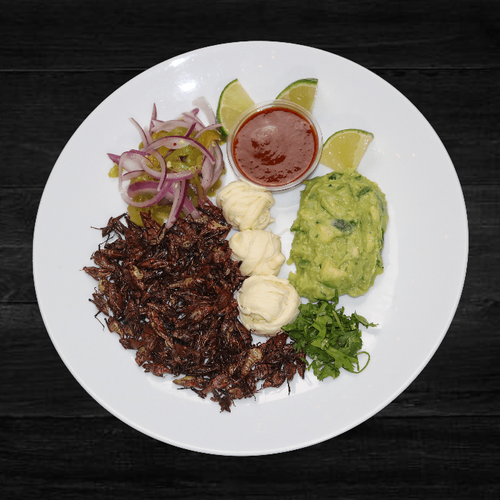 Grasshopper, quesillo, chile de agua, guacamole and tortillas