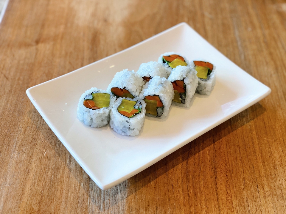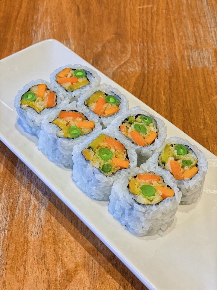 Assorted vegetable tempura roll.