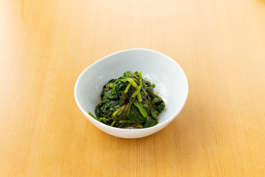 Blanched organic spinach tossed in sesame dressing.
