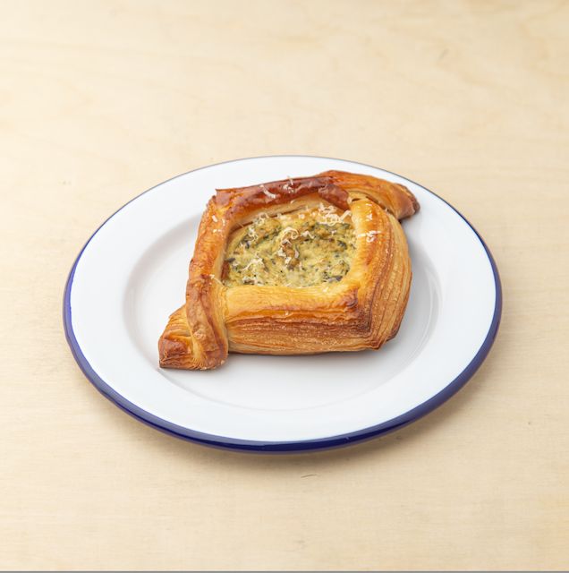 Caramelized onion, spinach, mushroom, ricotta and comté cheese. From our partner Jyan Isaac Bread.