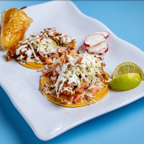 All seafood tacos, includes cabbage, pico de gallo, & cream