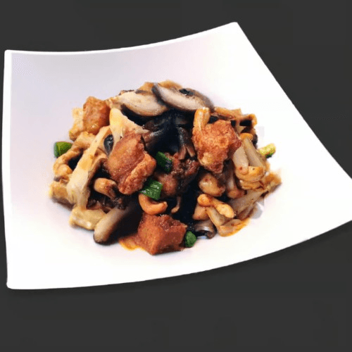 Very spicy dish. Peanut allergy alert. Popular dish. Choice of protein with chili paste, cashew nuts, onion, mushroom, red bell pepper, and green onion. Served over Jasmine rice.