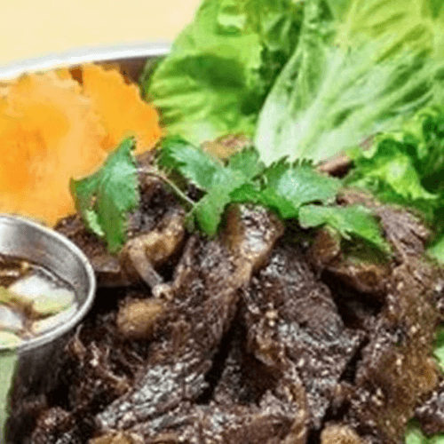 Popular dish. Very spicy dish. (During busy hours could take at least 30 mins). Grilled beef with red onion, green onion, mint, cilantro, and roasted rice powder.