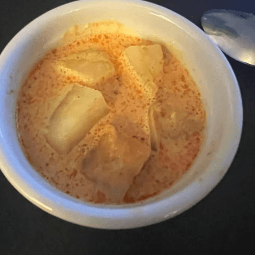 Very spicy dish. Popular dish. Choice of protein, yellow curry paste, coconut milk, potato, carrot, and onion.