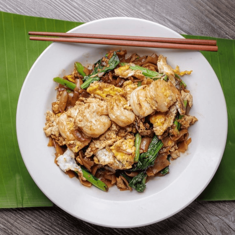 Choice of flat rice noodles or vermicelli, chinese broccoli, broccoli, and egg.