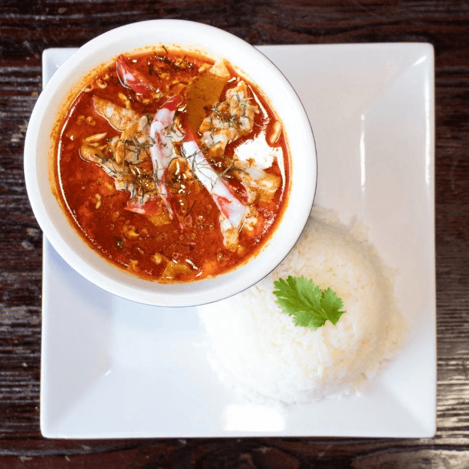 Roasted indian curry, braised pork spare ribs, onion, potatoes, and peanuts.