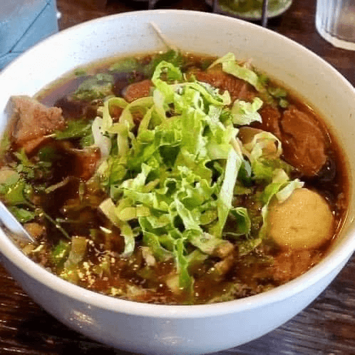 Pork, braise pork, meatball, liver, and stomach with bean sprouts and scallion.