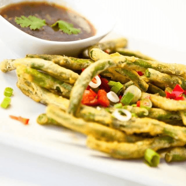 Chili, basil, garlic, and green bean with vegetables or firm tofu. This is a vegetable dishes. We are NOT a certified vegan restaurant.