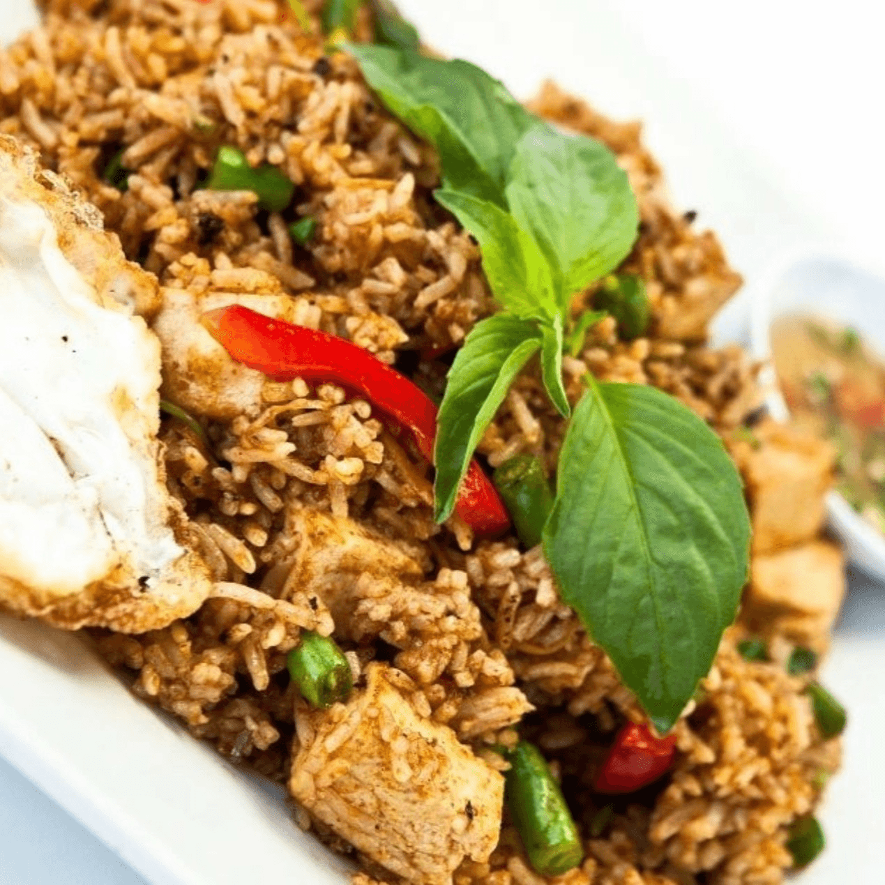 Choice of ground pork, ground chicken, or crispy pork belly. With green beans, chili, basil, and bell peppers.