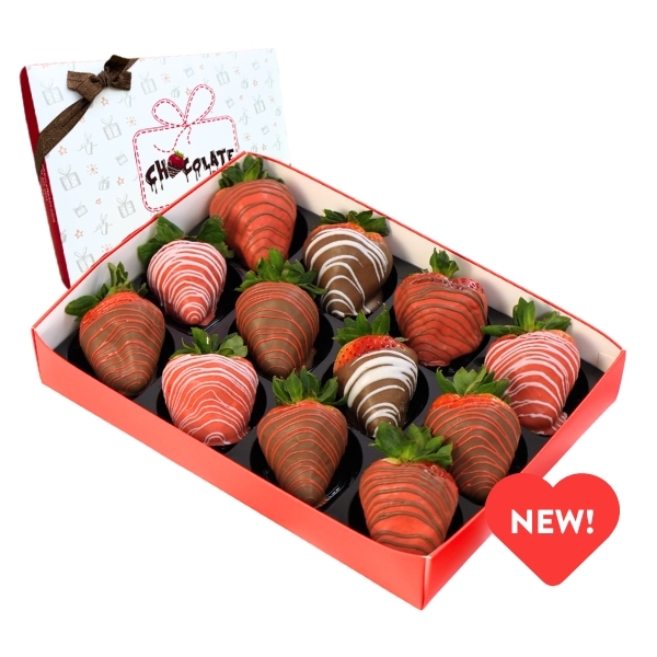 24 Strawberries covered in Belgian Milk Chocolate with White Chocolate drizzle.