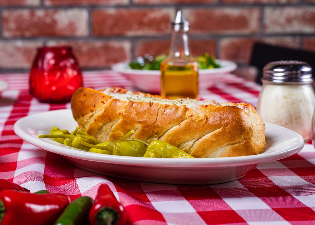 Toasted Italian bread smothered in garlic butter, topped with melted mozzarella, and baked to golden perfection. Served with a side of marinara.