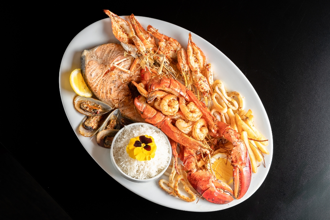 Grilled salmon, prawns, calamari, and mussels served with lemon butter and fresh herbs