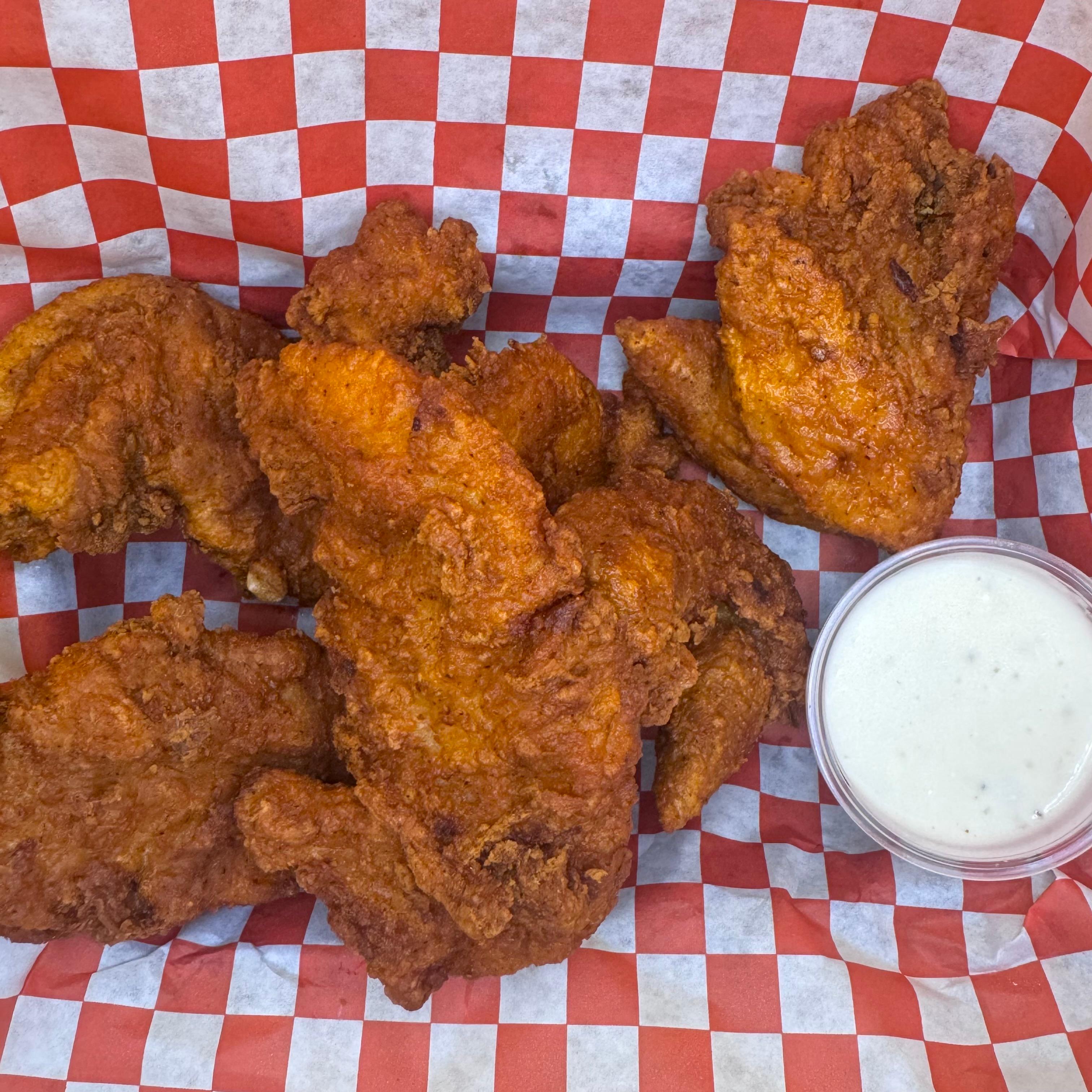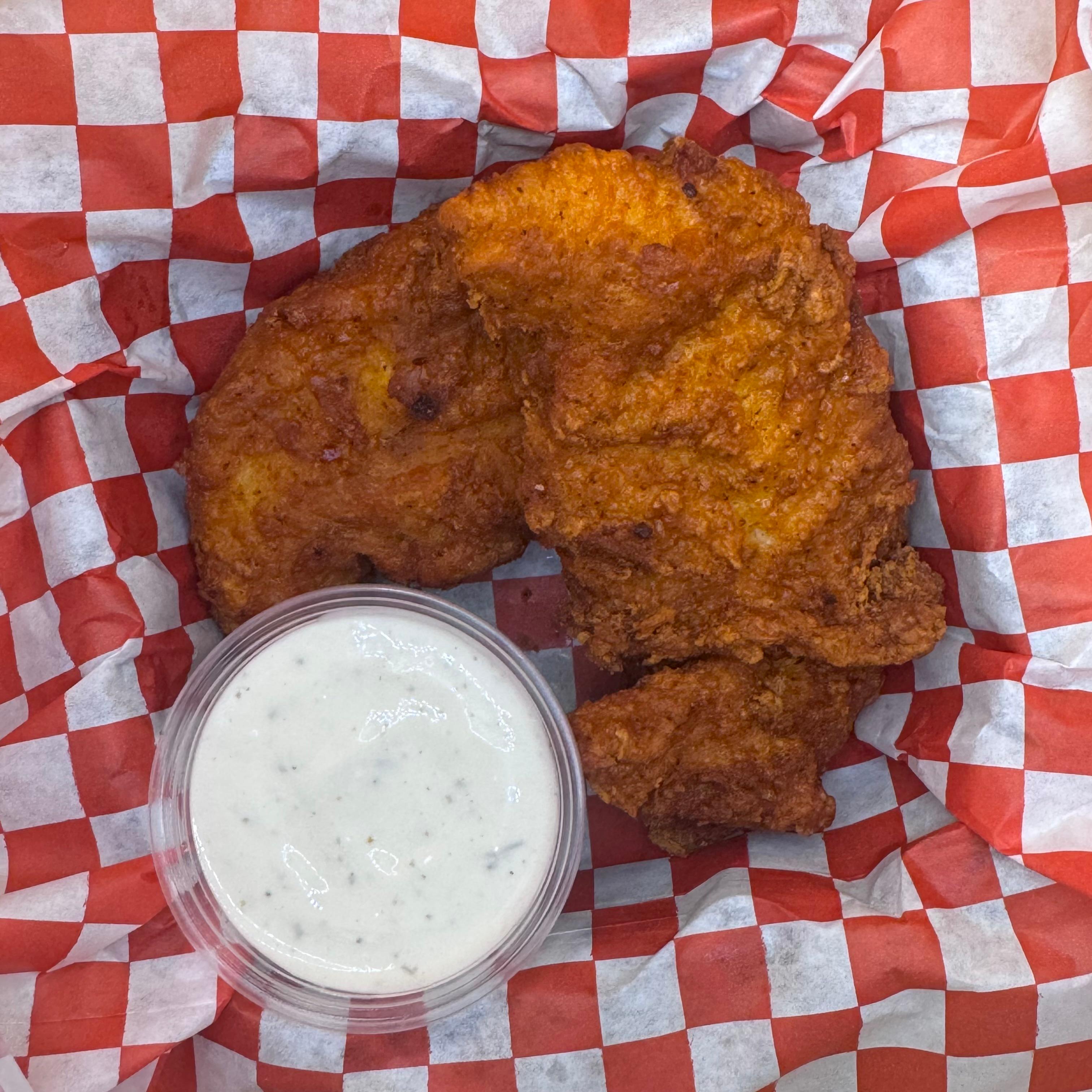 Two Cluckin' good tenders, choose 2 flavors & side of ranch or blue cheese.