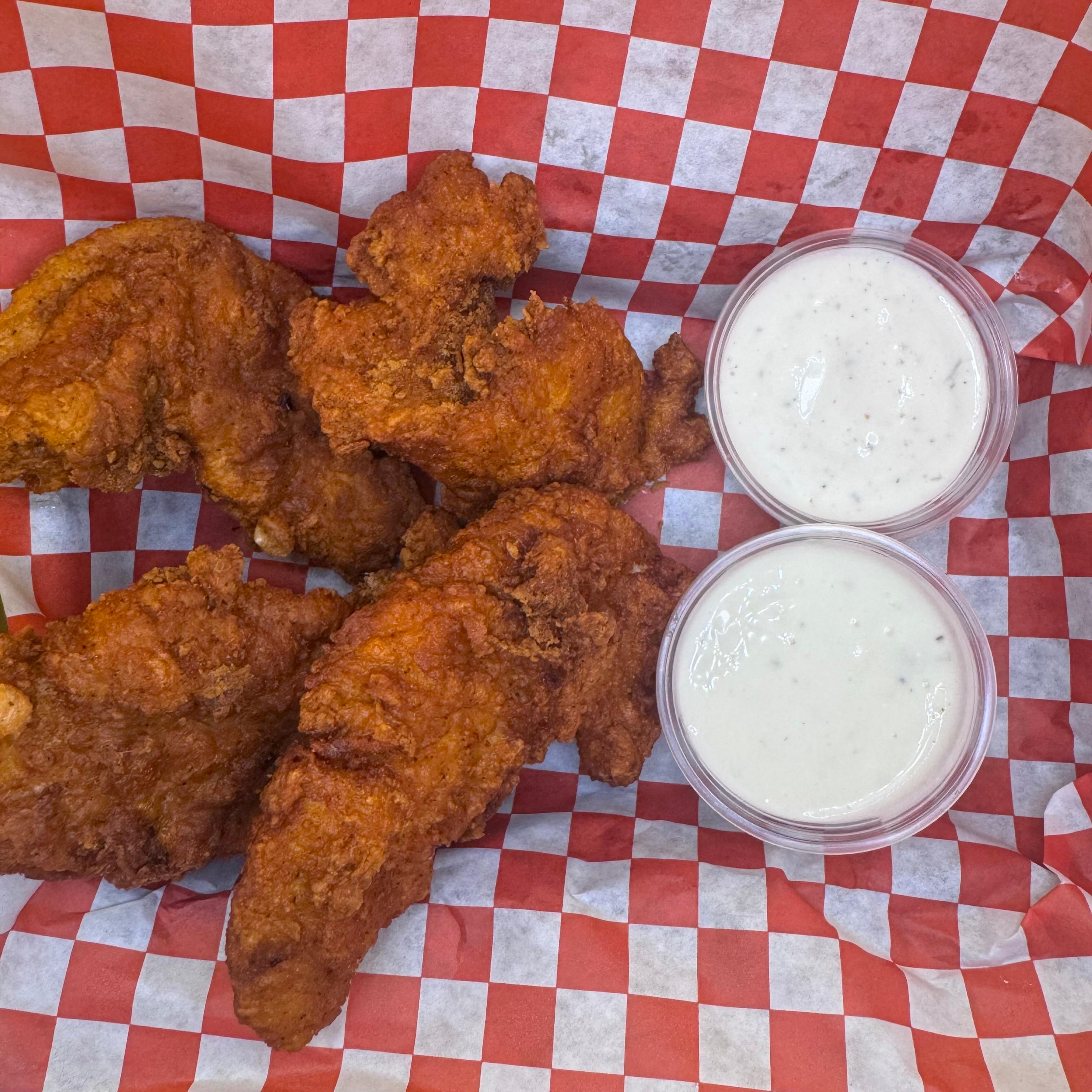 Four Finger-Licking tenders, choose 2 flavors & side of ranch or blue cheese.