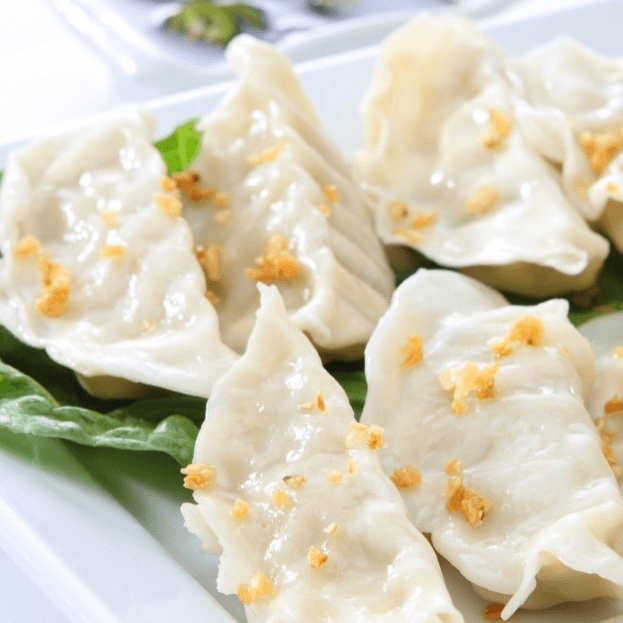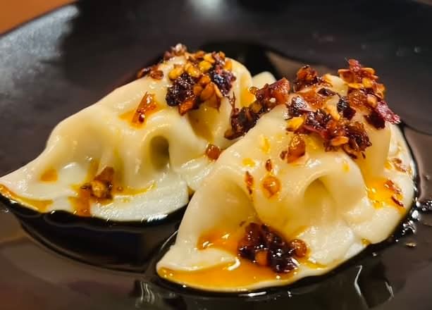 6 pieces. House special savory dumplings filled with chili and garlic, offering a spicy kick in every bite.
