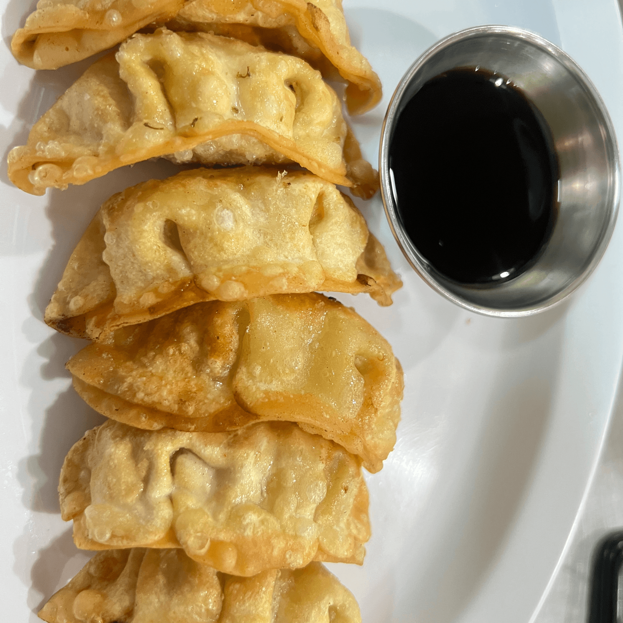 6 pieces. Savory chicken dumplings, perfect for a light start to your meal. Enjoy six pieces of this delightful appetizer.
