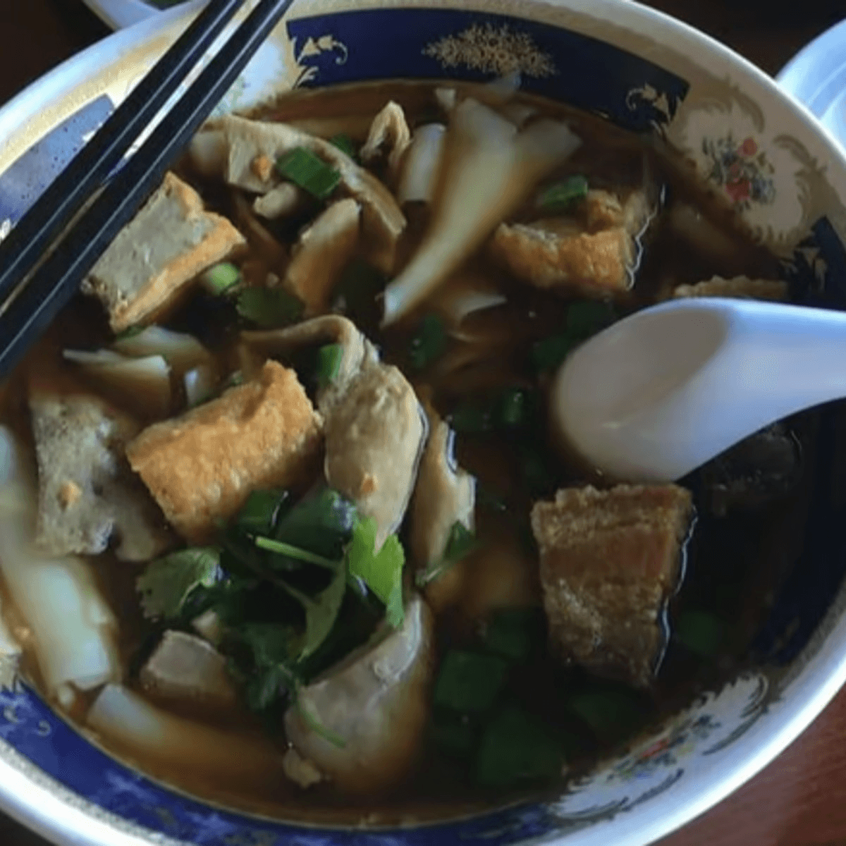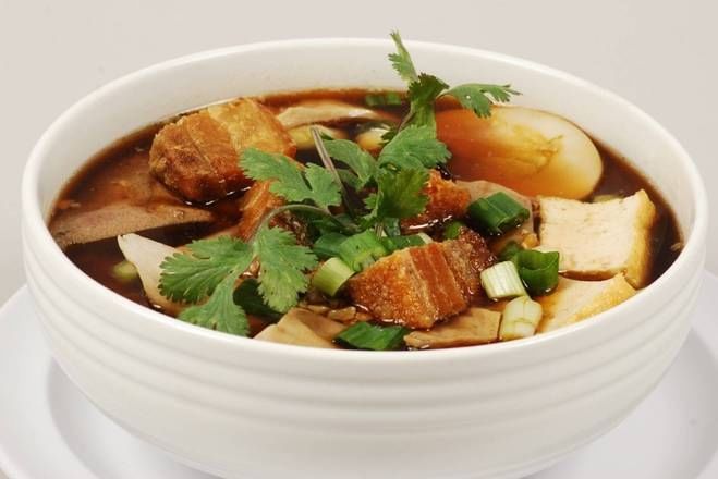 Noodle with choice of meat in hot and sour soup with lemon grass, basil.