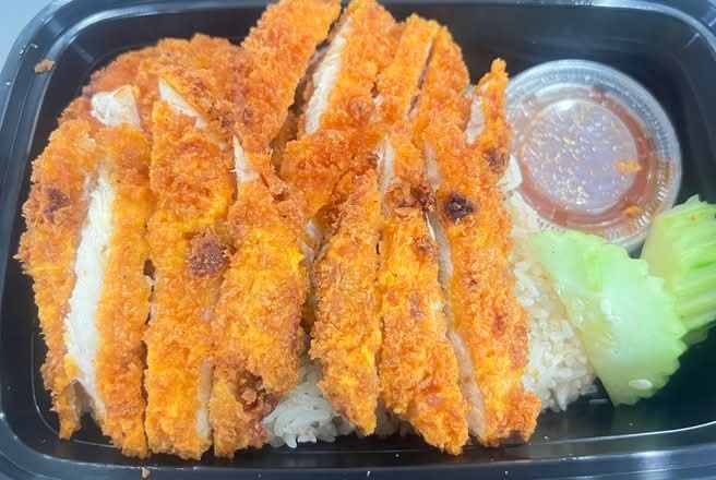 Steamed garlic and ginger rice topped with boiled chicken. Served with homemade spicy sauce.