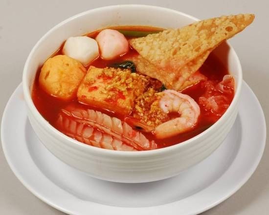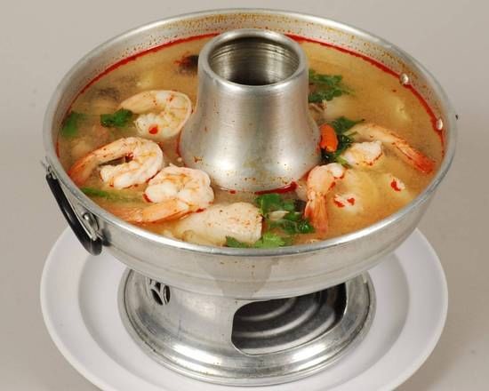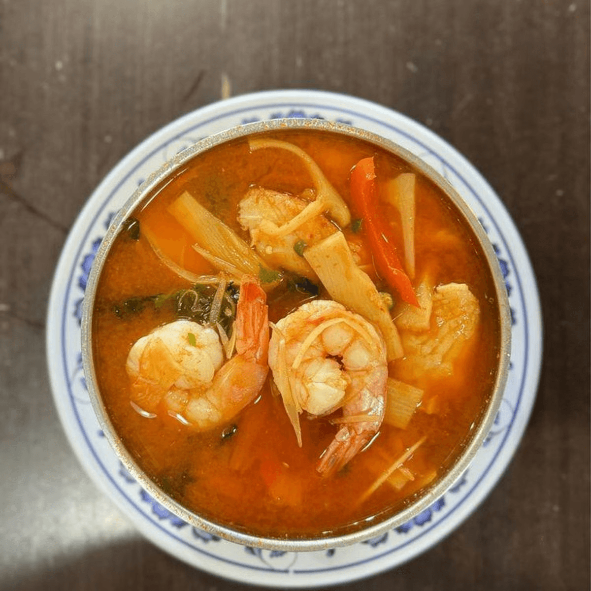 Hot and sour soup with shrimp, fish, mussel, imitation crab, mushroom, chili and lemon grass.