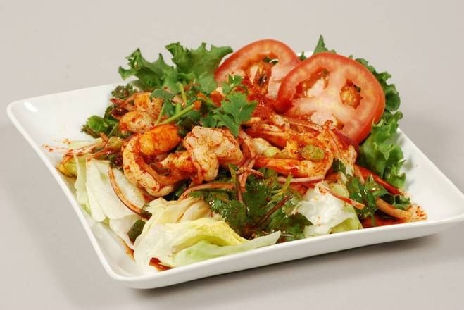 Grilled shrimp with chili paste, onions, lemongrass and lime juice. Spicy.