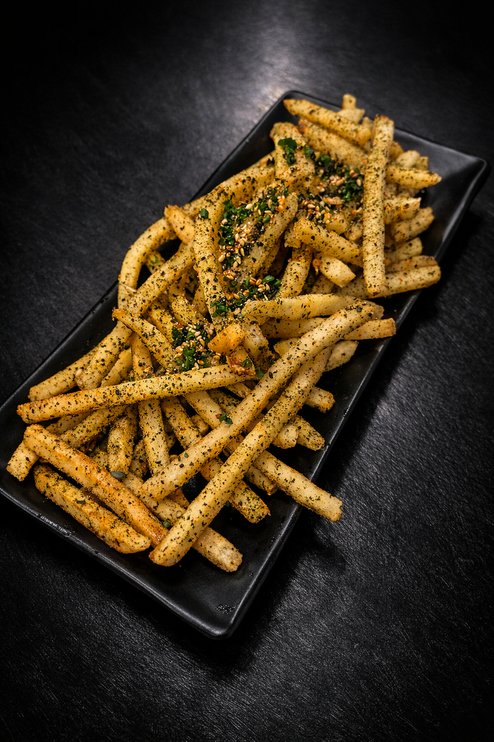 Crispy golden fries tossed in savory furikake seasoning and topped with sesame seeds and fresh herbs for a bold, umami-packed twist.