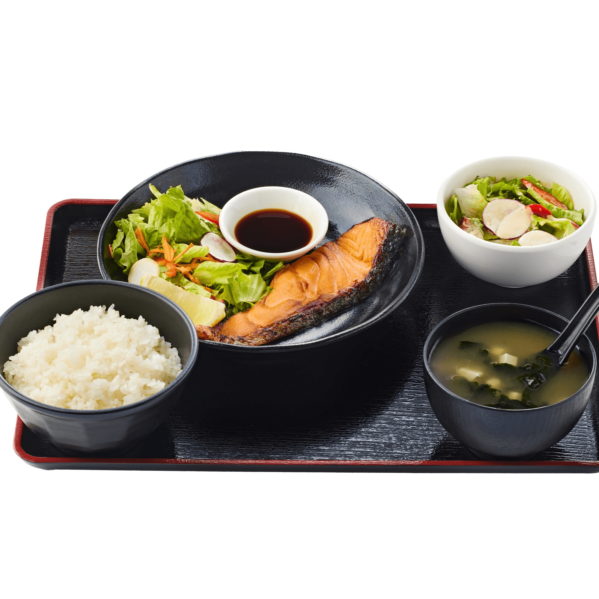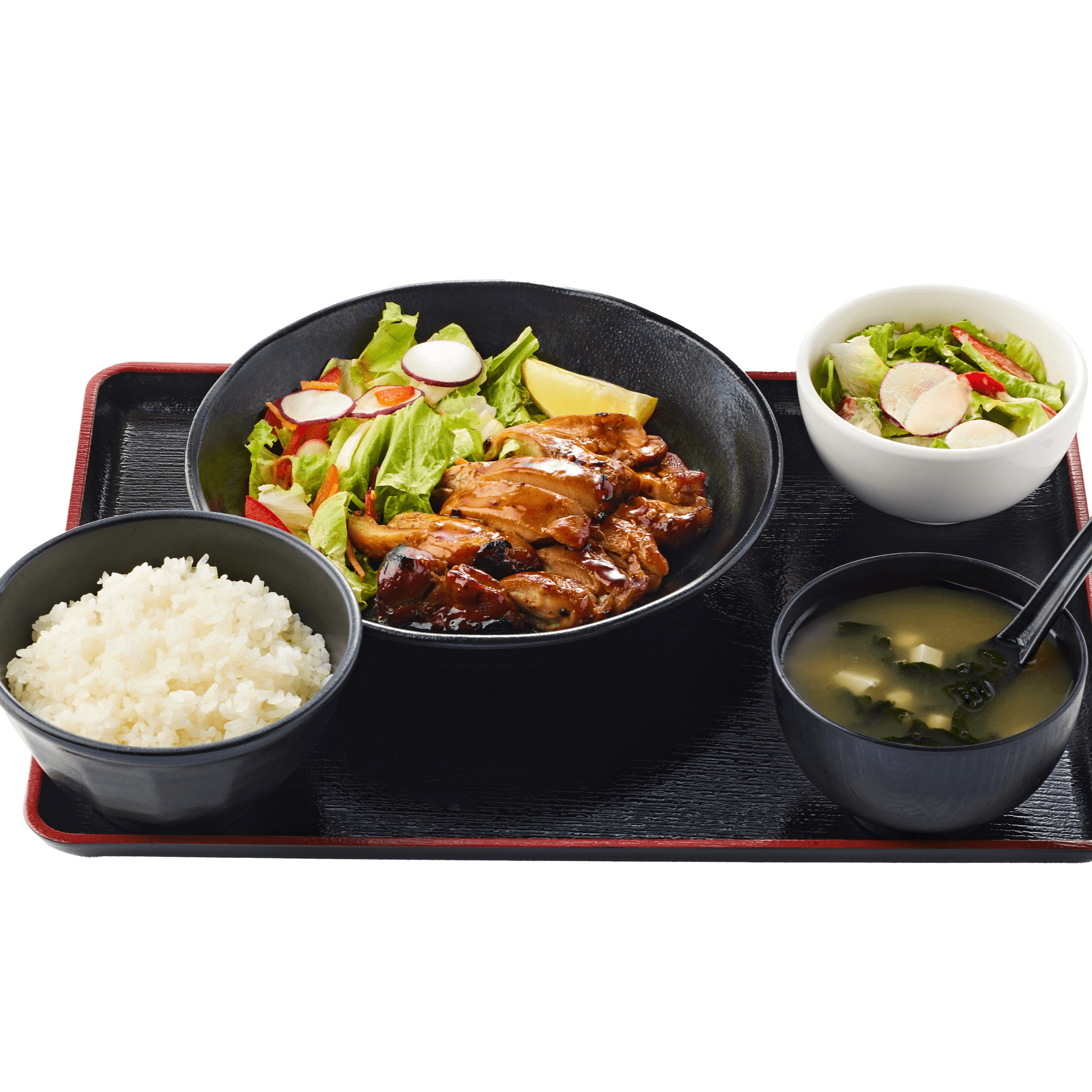 Thigh fillet with teriyaki sauce. Comes with miso soup, rice, mini salad