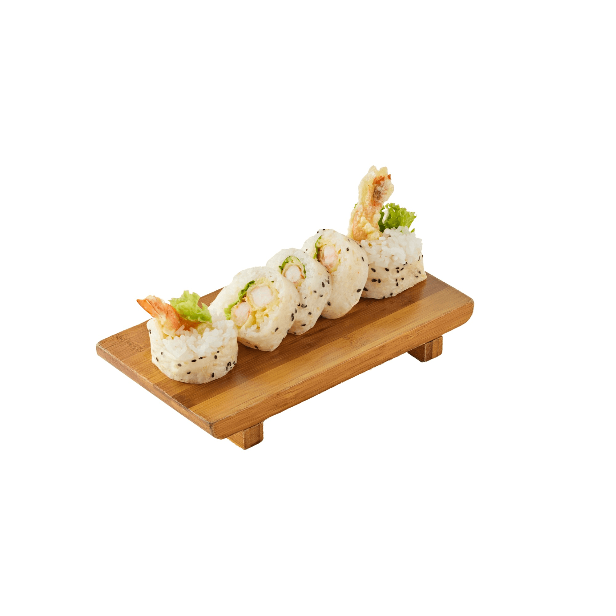 Shrimp tempura with cucumber, lettuce wrapped with soy paper, house mayo