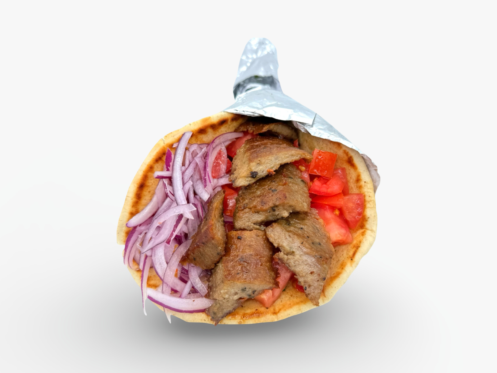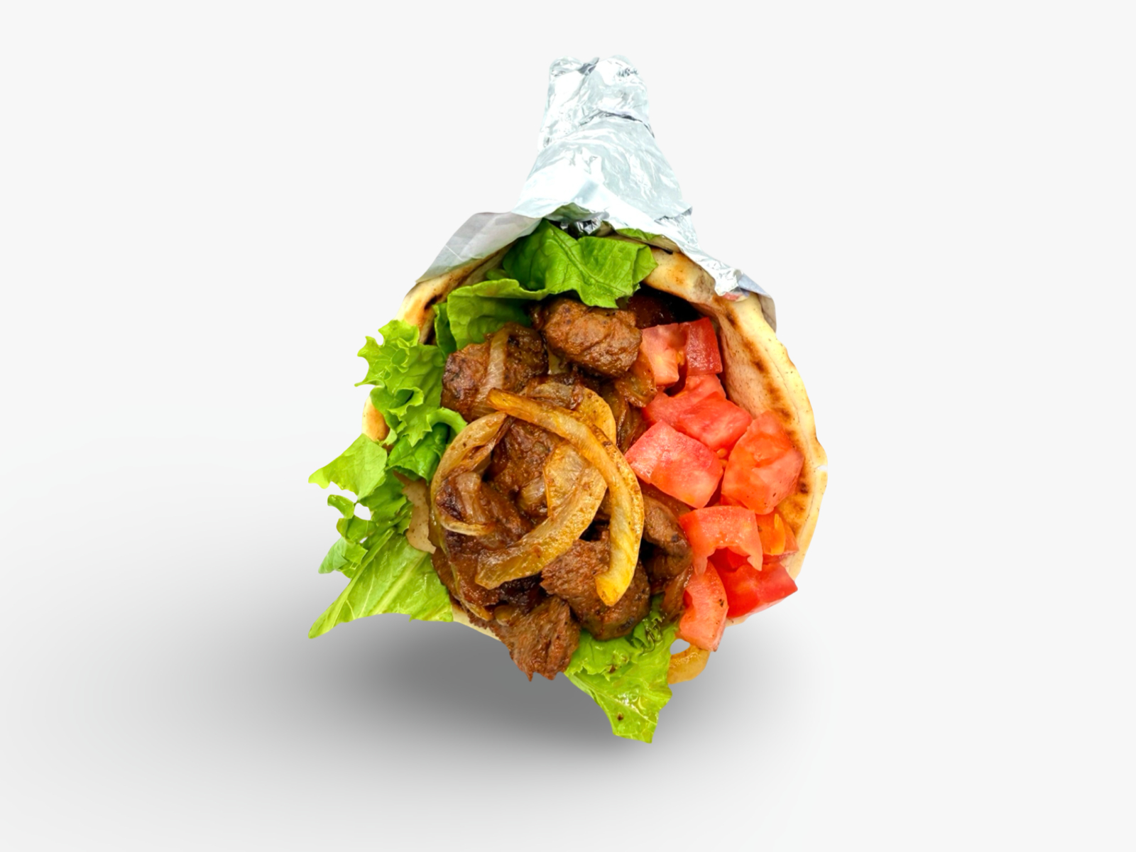 Tender marinated lamb with grilled onions, wrapped in a warm pita with crisp lettuce and fresh tomato for a bold, juicy bite.