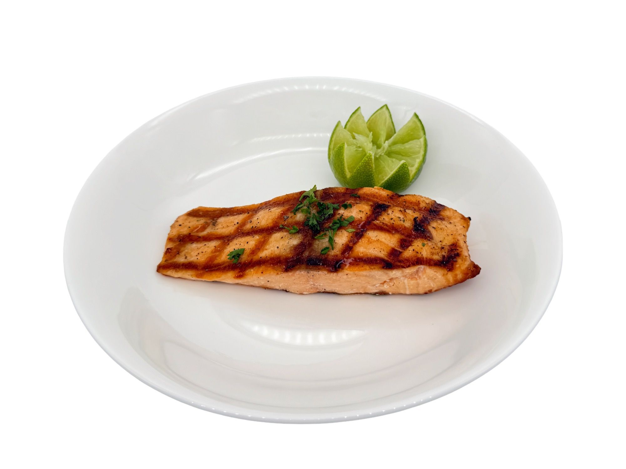 Charbroiled wild salmon, grilled to perfection and served fresh and flaky.