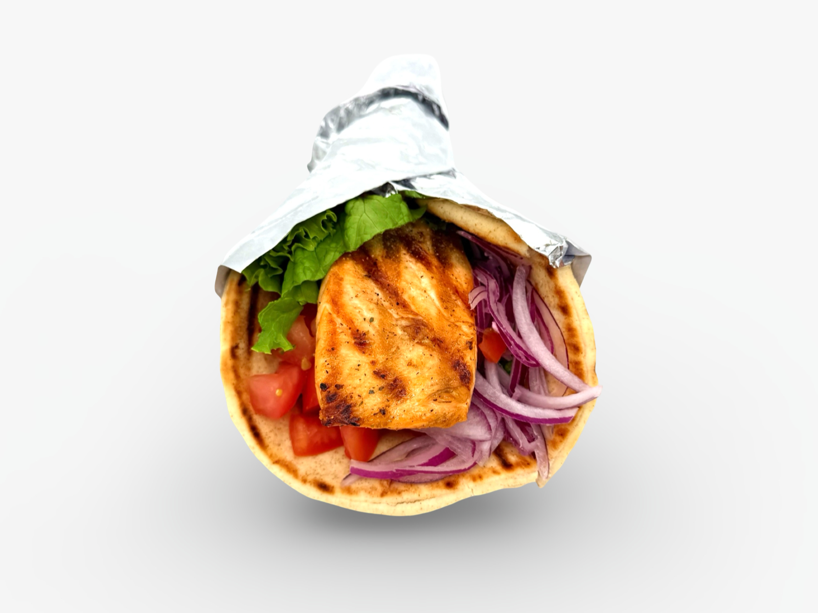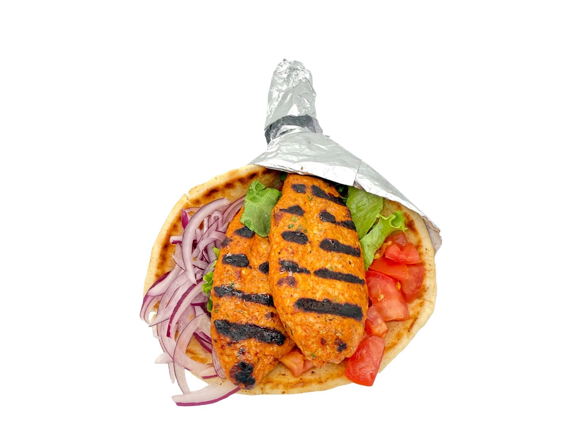 Seasoned ground chicken charbroiled to perfection and wrapped in a warm pita with our special sauce, crisp lettuce, fresh tomato, and onion for a juicy, flavorful bite.