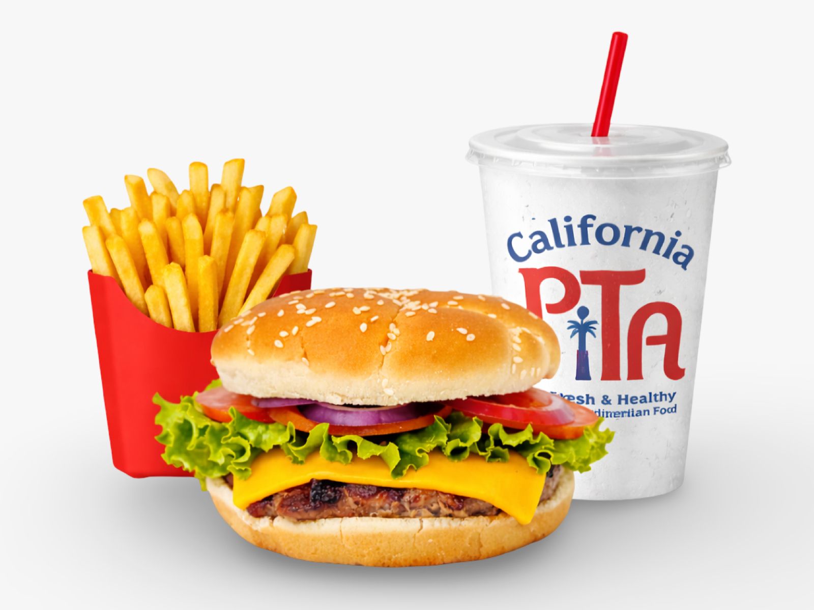 Our 100% Angus beef topped with delicious gyro served on a toasted bun! includes a soft drink and a side.