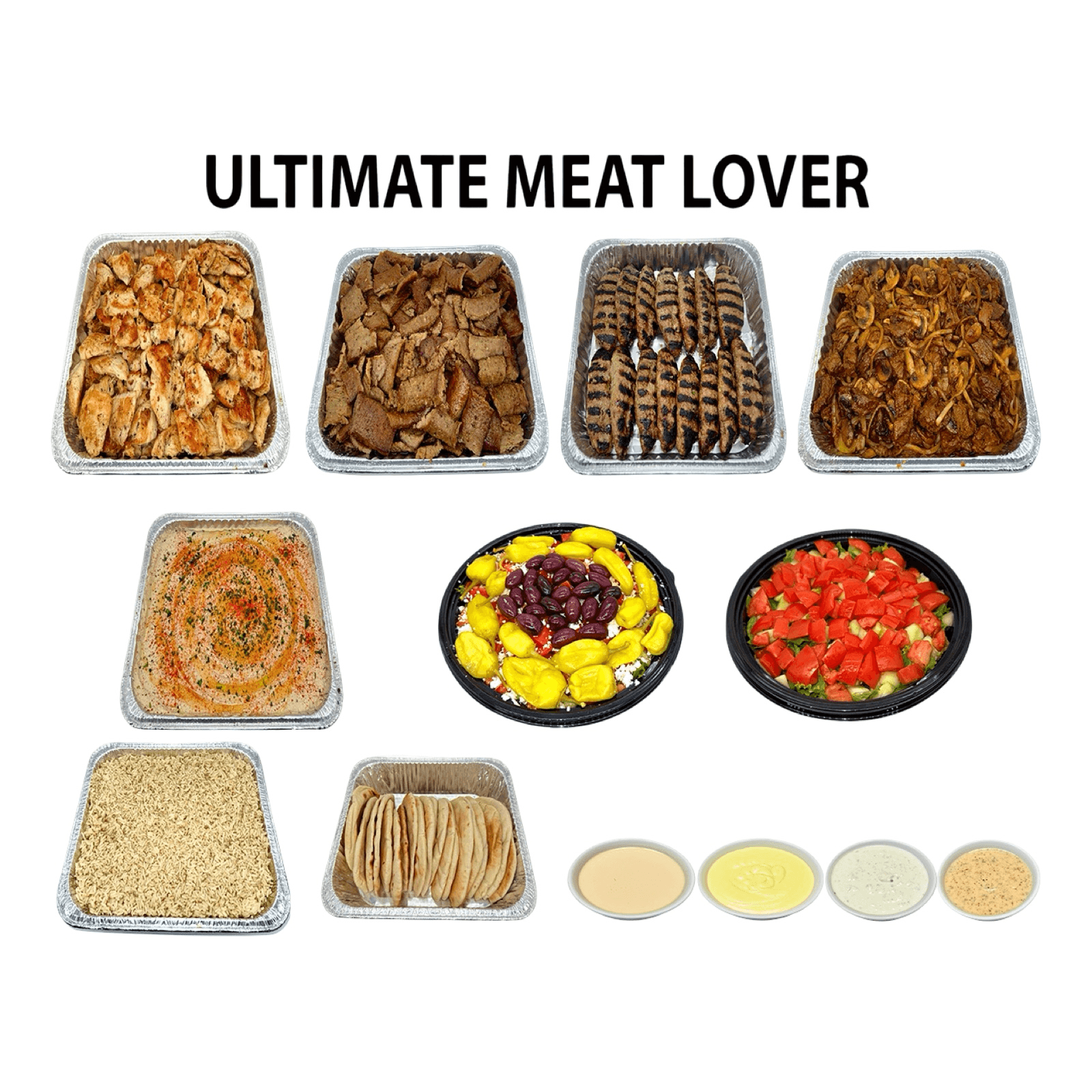 Choose any two of our delicious meats, served with fresh salad, creamy hummus, warm pita bread, and your choice of rice, brown rice, or fries for a complete, satisfying meal.