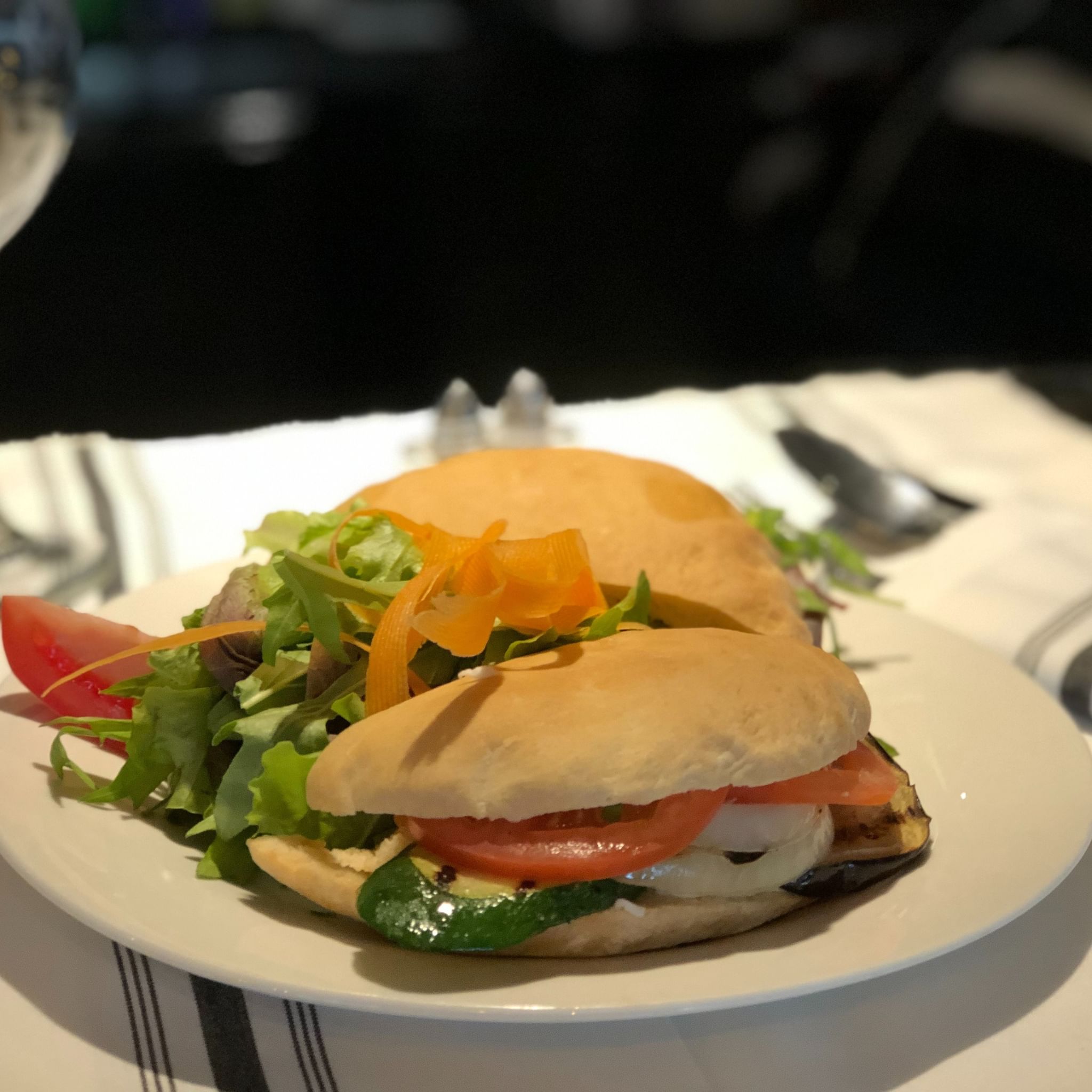Vegan. Grilled zucchini, eggplant, tomatoes, carrots, mushrooms and radicchio