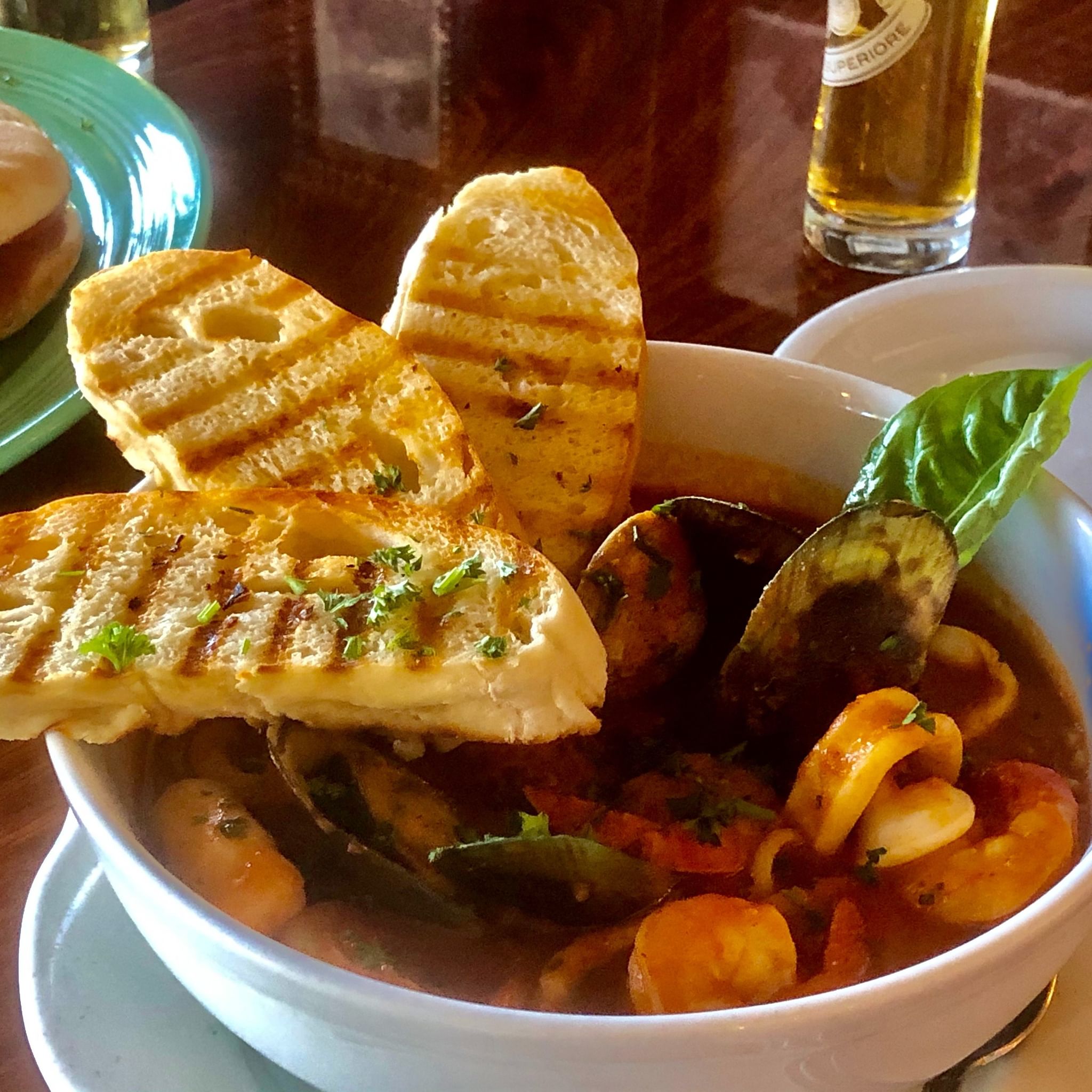Shrimp, calamari and mussels and clams sauteed in a marinara brodo sauce served with toasted garlic bread