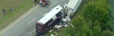 CALL NOW! TOLL FREE for a FREE CONSULTATION 1-877-959-5674 Due to the ever increasing congestion on our roadways and highways commuters are using rapid transit and public transportation more each year. In accordance with the growing number of people using buses as their main source of transportation, the number of injuries and deaths resulting from bus accidents is also rising. Bus accidents injure thousands and kill hundreds of people every year in the U.S. The U.S. Department of Transportation reported that in 2003 there were over 440 fatal bus accidents and thousands of injuries. Excessive speed, driver fatigue, faulty brake system, dangerous tire conditions and lack of training all play a role in the number of bus accidents each year. While regulations have been instituted to prevent the number of fatalities, bus accidents still play a major part in killing people and causing the serious injuries that occur on our highways daily. The injuries and fatalities resulting from the negligent operation of large buses and school buses leave families confused and angry and bus drivers who know they are not at fault scared and sometimes jobless. Always contact a lawyer as soon as possible so they can help determine your rights, both as a victim or as a plaintiff driver or bus company. Delays always prevent your case from proceeding swiftly.