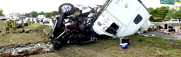 CALL NOW! TOLL FREE for a FREE CONSULTATION 1-877-959-5674 NO RECOVERY = NO FEE Get Legal Help After a Commercial Truck Accident! Any traffic accident involving a commercial truck is likely to result in serious physical injury and property damage. In the event that you or a loved one are involved in such an accident, after receiving proper medical care you may want to consult an experienced attorney to ensure that any potential legal claim is properly assessed and that your rights are protected. Especially in light of legal deadlines for filing lawsuits, meeting with an attorney as soon as possible is the best way to protect your rights. Early attorney consultation or representation will help secure crucial information and evidence immediately after a truck accident. A traffic accident involving a commercial truck, such as an eighteen-wheeler or other large freight carrier, can be much more catastrophic than an ordinary car accident. A typical fully-loaded large commercial truck can weigh 80,000 pounds or more, while an average passenger automobile weighs approximately 3,000 pounds. Because of this size disparity, and due to the basic laws of physics, any collision between a commercial truck and another vehicle is likely to result in serious, even fatal, injuries. While statistics show that truck drivers are generally much more careful on the road than automobile drivers, and thankfully the incidence of fatal crashes involving trucks and other large vehicles has declined in recent years, large truck crashes still accounted for 5,350 fatalities and 133,000 injuries in 2001. The unique danger posed by commercial truck accidents can be made worse depending on the nature of the freight the truck is carrying. For example, if hazardous or flammable materials are on board, secondary injuries attributable to such dangerous cargo can result, including burns and respiratory injuries. In the event that you or a loved one is involved in an accident with a commercial truck, you may be entitled to recover compensation for your injuries by bringing a legal claim against the responsible parties. This article will provide an overview of such a claim.