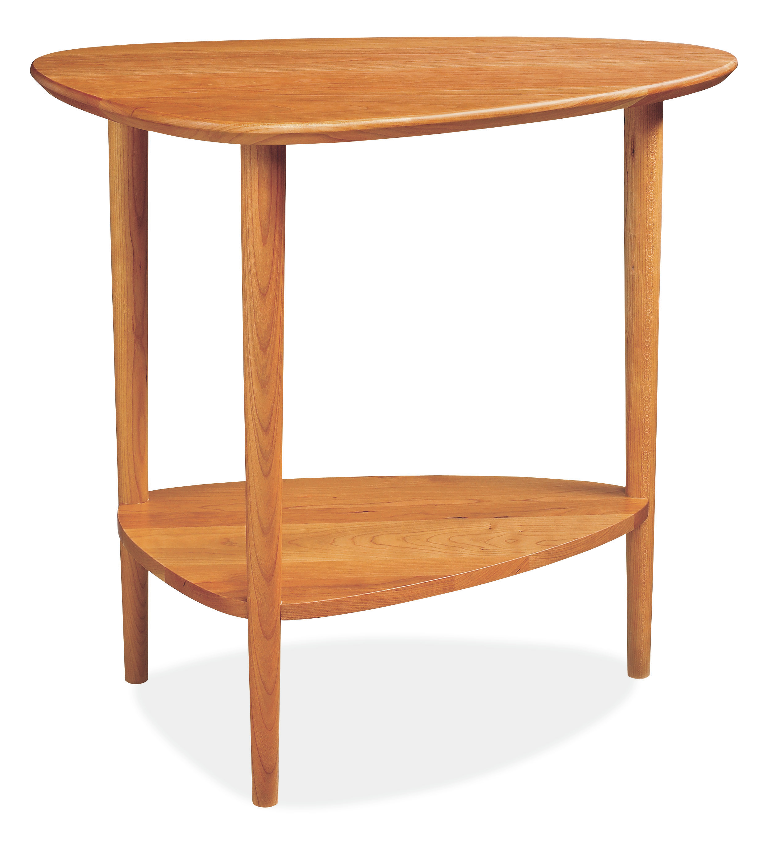 Durable solid wood is transformed into the light, fluid profile of our Gibson end table through the skill of West Virginia woodworkers. Softly beveled edges, turned legs and unique contours contribute to this table’s mid-century elegance.