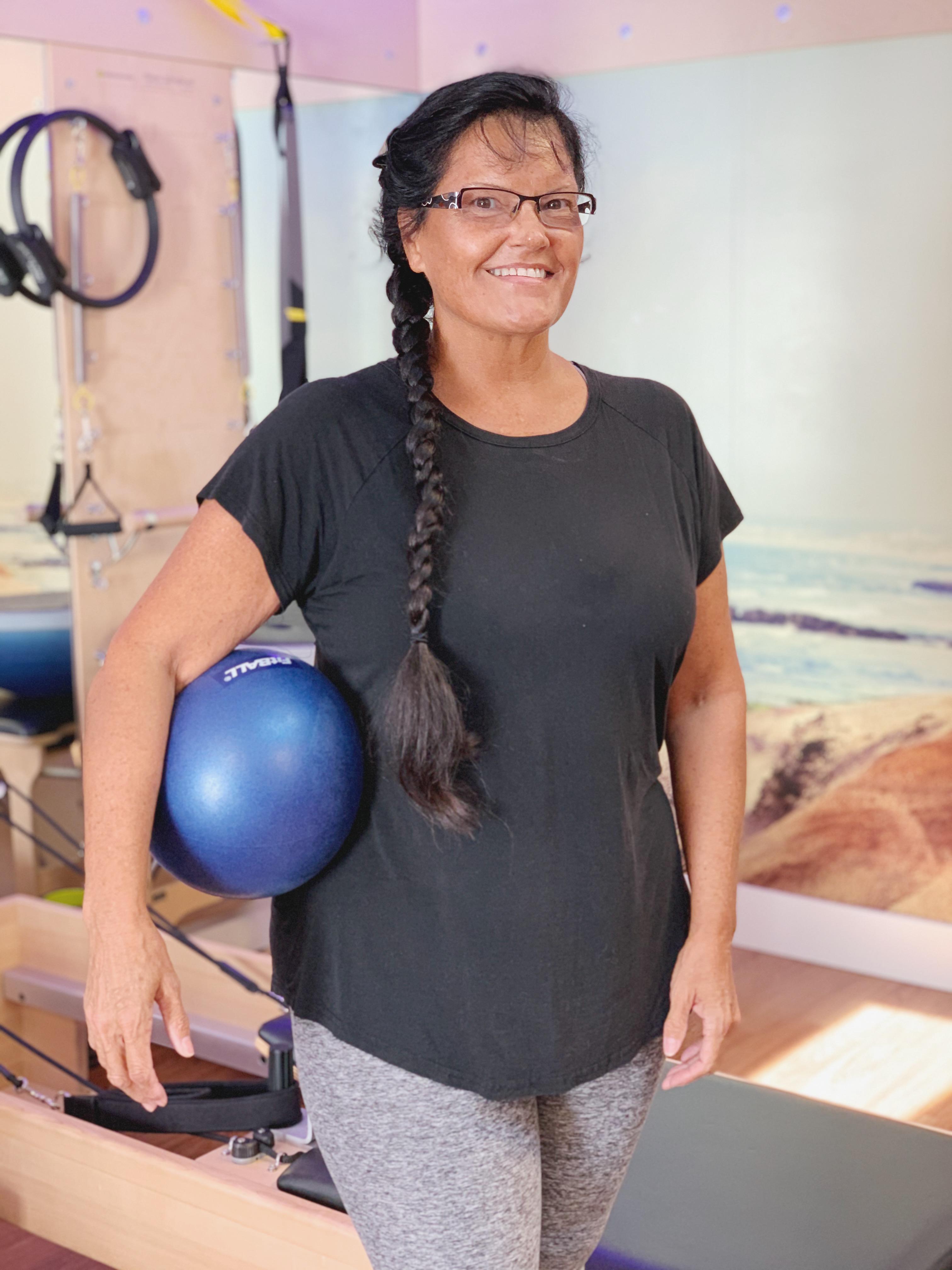 Angela Bull spent time in Southern California beach towns as a very young child before her family relocated to beautiful Lake Tahoe where she was privileged to grow up. She was introduced to Pilates as a child there, as a way to help her with her Rheumatoid Arthritis. Pilates has kept her active and her passion only grew over the years. When Club Pilates came to her current home town the opportunity arose and she received her comprehensive certification through Club Pilates 500 hour Teacher Training Program. Her love of Pilates and wanting to bring fresh fun flows that challenge her clients and their cores keeps her active in continuing education. Angela is currently a NASM certified Personal Trainer with emphasis on Nutrition and Women’s Health. She practices with a Romana Kryzanowska trained Master Trainer and has also obtained additional certifications in Barre Above with Pilates Focus, TRX Suspension(STC), TRX Functional(FTC), TRX Group(GTC) and TRX Sports Medicine Suspension Training. Along with certifications in ActivMotion Bar Foundations, Bosu and being a Master Alumni with Bosu. Angela’s passion for Pilates keeps her striving to share this with others. When she’s not nerding out on Pilates and continuing/enhancing that education she is busy at the VA visiting with her Service Dog, just playing with one of her couple of dogs, out on a hike or entering a 5k charity event with them or just having some personal PT time at Crossfit!