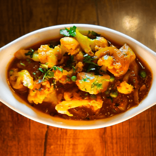 Potatoes and cauliflower flavored with Himalayan spices. Vegan.